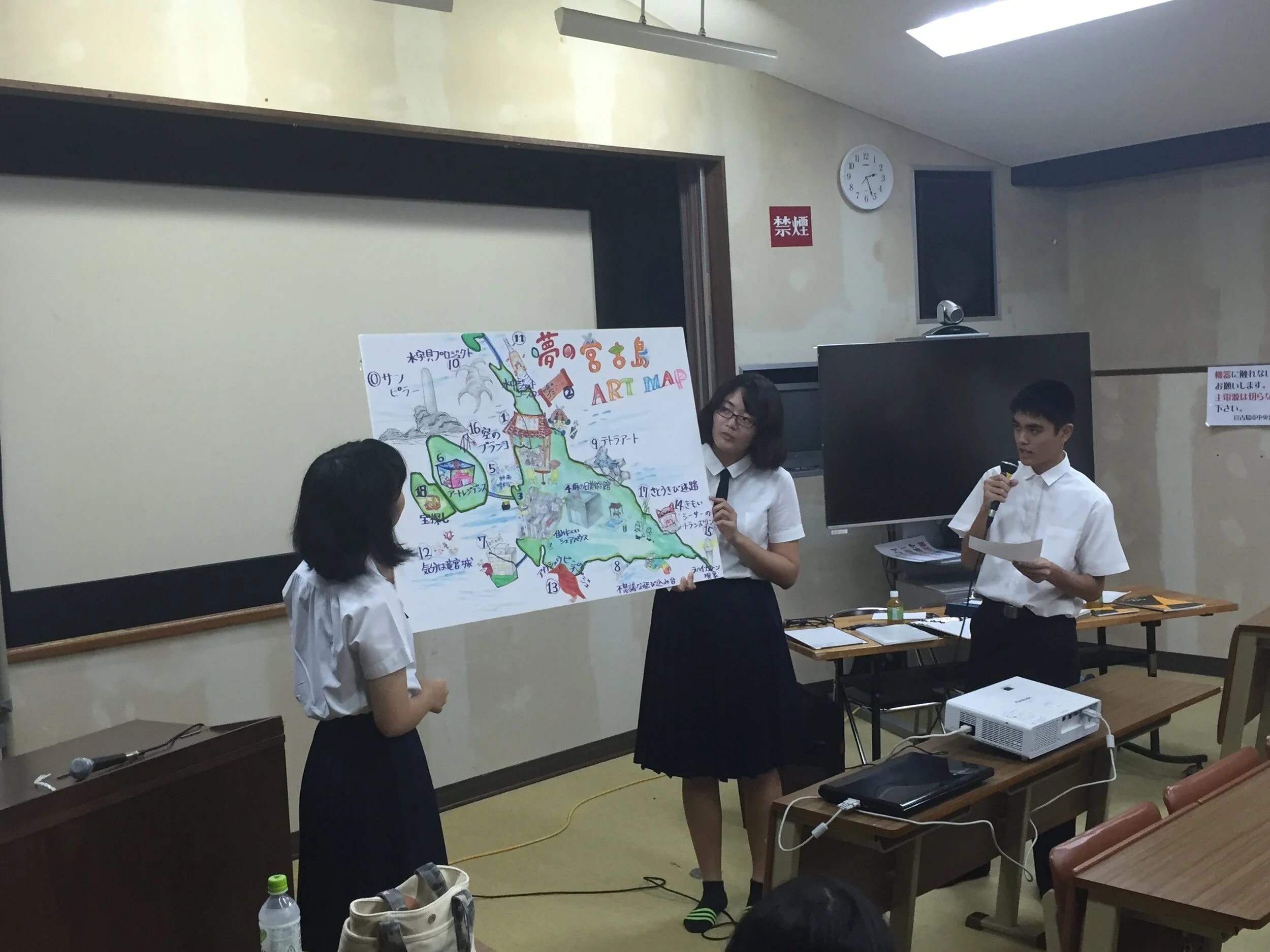 After visiting Benesse, students gave a report on their trip and presented an exhibition at the Miyako Island Citizens’ Cultural Festival.